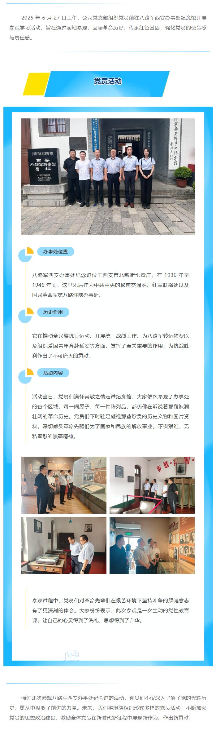 銘記歷史,傳承精神 —— 公司黨支部組織黨員參觀八路軍西安辦事處紀念館
