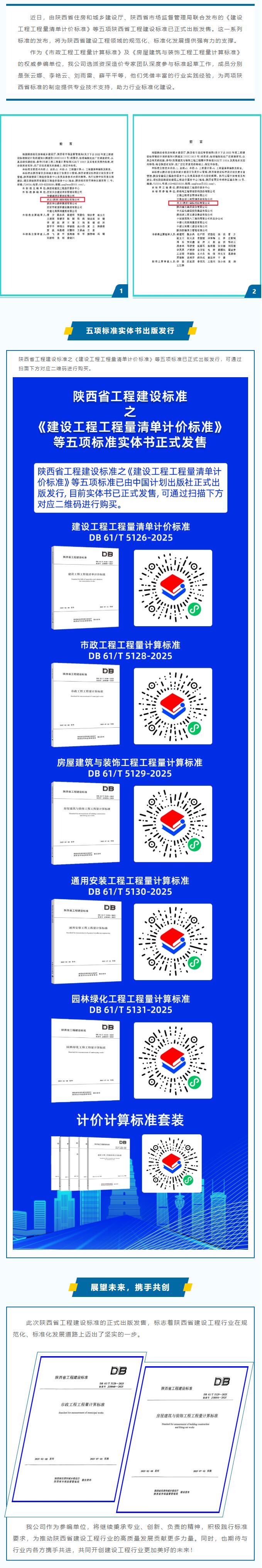 行業新篇!陜西省《建設工程工程量清單計價標準》等五項標準發布,我司榮耀參編!
